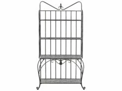 Auf dieser Pflanzentreppe können Sie Ihre herausragende Blumensammlung gekonnt in Szene setzen. Wer etwas prächtigere Grünpflanzen besitzt, die etwas mehr Platz für sich benötigen, kann die beiden oberen Regalböden praktisch zusammenklappen. Die Schutzkappen an den Beinen sorgen für zusätzliche Stabilität und beugen jeglichen Kratzern vor. So eignet sich das Modell nicht nur für den geschützten Außenbereich sondern auch für den Wohnraum. Die elektrostatische Beschichtung und Pulverbeschichtung erhöhen die Langlebigkeit des Modells und die gebürsteten Oberflächen in Gold bringen eine wundervolle Antik-Optik zustande.