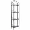 Ob als Pflanzenständer oder als dekorative Ablagemöglichkeit für Gartenwerkzeug und andere nützliche Utensilien – dieses Gartenregal ist einfach vielseitig verwendbar. Dank den 4 Ablagen können mehrere Pflanzen und Gegenstände mühelos und standsicher platziert werden. Die Pulverbeschichtung garantiert dem Pflanzenregal eine gute Rostbeständigkeit und die verschnörkelte Form ist ein richtiger Blickfang für alle, die es in ihrem Outdoorbereich romantisch und nostalgisch mögen.