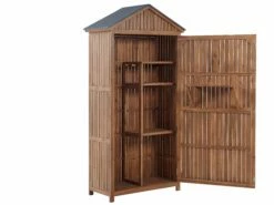 Viel Platz auf kleinem Raum – dieser Geräteschrank aus widerstandsfähigsfähigem Akazienholz bringt Ordnung in Ihren Garten. Drei feste Regalböden, zwei Aufhängemöglichkeiten und eine klappbare Fläche in der TĂĽrinnenseite geben Ihnen Möglichkeit, kleine und größere Gartengeräte platzsparend zu verstauen. Somit haben Sie diese nicht nur immer griffbereit, sondern auch geschĂĽtzt vor jeder Witterung.