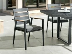 Moderne, schwarze Outdoor-AluminiumstĂĽhle mit 4 passenden Sitzkissen