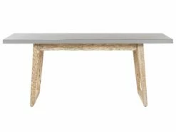 Dieser trendige Esstisch überzeugt insbesondere durch die kontrastive Gegenüberstellung von Materialien und Farben. Die großzügige Tischplatte aus Faserzement ist äußerst widerstandsfähig und langlebig, weshalb das Möbelstück über Jahre Ihr Auge erfreuen kann. Die robusten Tischbeine aus hochwertigem Akazienholz verleihen der industriellen und puristischen Zementplatte einen gemütlichen und natürlichen Touch, der durch die kantige Formgebung noch aufgewertet wird.