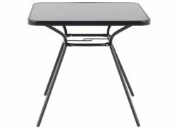 Der praktische Gartentisch aus pulverbeschichtetem, schwarzem Stahl mit einer schwarzen Tischplatte aus Sicherheitsglas ist die ideale Lösung für Sie, wenn Sie keinen großen Gartentisch benötigen oder einen zusätzlichen Tisch brauchen bei einer größeren Runde. Er ist aus witterungsbeständigem, hochwertigem, robustem, sehr pflegeleichtem Material gefertigt. Die stabile Glasplatte des Gartentischs liegt auf einem Gestell mit 4 schlanken Beinen, und der Tisch ist leicht transportierbar und flexibel nutzbar für Garten, Terrasse und Balkon. Er ist auch perfekt geeignet bei Ausflügen an den Strand, Picknicks, Gartenpartys und sogar im Urlaub.