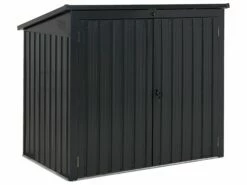 Möchten Sie Ihre Gartengeräte sicher und außer Sichtweite aufzubewahren? Dieser Metallschuppen wird sich mit seinem modernen Design in Ihren Außenbereich perfekt einfügen. Das besondere an dem Modell: Der Metallschrank ist multifunktional und kann als Verkleidung für Mülltonnen, als Versteck für verschmutzte Gummistiefel oder für Gartengeräte genutzt werden. Der Geräteschrank verfügt über Doppeltüren, die Ihnen erlauben auch mal etwas Größeres zu verstauen. Zudem lässt sich der Schuppen auch von oben öffnen, was besonders praktisch ist, wenn sie ihn als Mülltonnenverkleidung nutzen oder Sie etwas schnell ins Innere legen möchten. Der stabile Deckel lässt sich mit Hilfe eines Schlüssels verschließen und dank einer Gasdruckfeder leicht öffnen. Die Wände des Gartenschranks bestehen aus dicken verzinkten Stahl-Trapezblech, das zusätzlich pulverbeschichtet wurde. So ist für entsprechende Stabilität, Korrosionsbeständigkeit und Wetterbeständigkeit gesorgt.