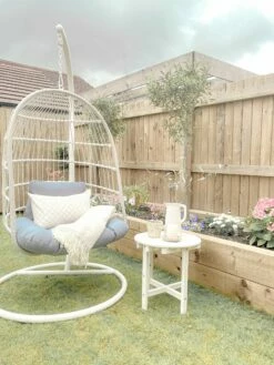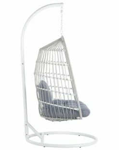 Moderner Hängesessel mit weißem Gestell inklusive Kissen