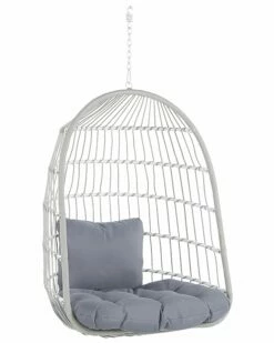Suchen Sie nach einem bequemen Möbelstück, das Ihnen erholsame Stunden im Garten oder Terrasse garantiert? Wenn ja, dann ist dieser Hängesessel wie geschaffen für Sie! Das stabile und beständige Gestell und der formschöne Sesselkorb wurde aus Metall und Polyester-Flechtseil in Weiß gefertigt und verleiht jedem Innenraum einen natürlichen Boho-Touch. Der geflochtene Korb mit Metallkette und die weichen und wunderbar gepolsterten Kissen in Grau machen den Stuhl zu einem perfekten Ort zum Schaukeln, Entspannen oder Lesen.