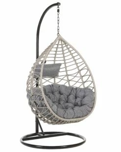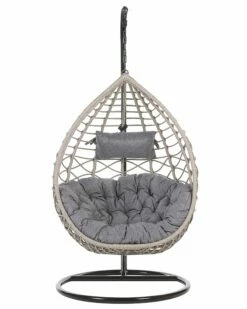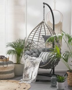 Ein Designelement, das für Gemütlichkeit in Ihrem Zuhause sorgt! Da der geflochtene Korb an einem stabilen Gestell mit einer hochbelastbaren Metallkette hängt, ist für genügend Stabilität gesorgt. Das robuste Polyrattan ist witterungsbeständig und das Sitzkissen ist nicht nur bequem, sondern auch pflegeleicht. Ob Innenraum, Balkon, Terrasse oder Wintergarten – mit diesem Sessel finden Sie den perfekten Zufluchtsort, in dem Sie die Welt um sich herum vergessen und eine beruhigende, ausgeglichene Schaukelbewegung genießen können.