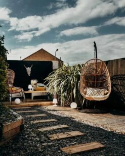 Ein standsicheres Stahlgestell kombiniert mit einem geflochtenen Korb in einem Farbton, der sich in jede Einrichtung ausgezeichnet einfügt und den Wohlfühl-Charakter des Raumes zur Geltung bringt. Dank der praktischen, hochbelastbaren Kettenaufhängung kann man sanft hin und her schaukeln. Der charmante Boho-Look dieses Modells und die weichen Kissen lassen unbeschwerte Urlaubsgefühle aufkommen, so dass jeder Aufenthalt auf der Veranda, dem Balkon oder im Schlafzimmer zum genüsslichen Abenteuer wird.