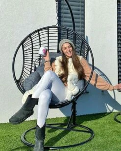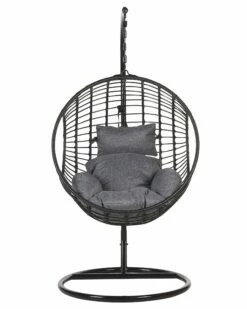 Runder Hängekorbsessel mit schwarzem Gestell inkl. Kissen