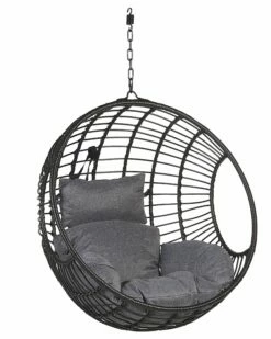 Wohnzimmer, Wintergarten oder Balkon? Dieser stilvoller Hängesessel aus pflegeleichtem Polyrattan verfügt über ein stabiles Stahlgestell und lässt sich beliebig platzieren. Der robuste Korb ist sicher an einer Kette befestigt, die sanftes hin und her schwenken ermöglicht. So schenken Sie sich eine wohlige Entspannung nach einem harten Arbeitstag. Die beiden massiven Kissen sind perfekt, um gemütliche Stunden vor dem Fernseher zu verbringen.