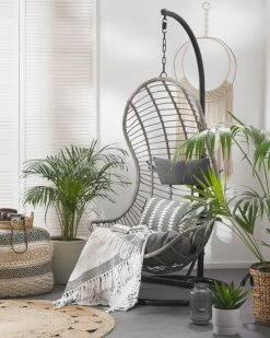 Formschöner Boho-Hängesessel mit schwarzem Gestell inkl. Kissen