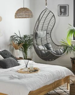 Mit diesem hängenden Sessel schaffen Sie sich einen Zufluchtsort, der besonderen Art! Das stabile, standsichere Gestell wird mit einem Korb aus Polyrattan kombiniert, der Gemütlichkeit in den Wohnraum zaubert. Dank der Fertigung aus hochwertigen Materialien und der Kombination mit weichen Kissen, kann dieses Modell auch im Freien benutzt werden. So können Sie sich eine gemütliche Leseecke auf dem Balkon, der Veranda oder im Wintergarten kreieren.