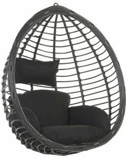 Dieser formschöne Sessel haucht einen bezaubernden Boho-Look in jeden Innenraum und sieht auch auf dem Balkon oder Terrasse hervorragend aus. Die dick gepolsterten Kissen in Schwarz sind sehr bequem und machen den Stuhl zu einem perfekten Ort zum Schaukeln, Entspannen oder Lesen. Kombinieren Sie den geflochtenen Rattan-Korb mit unterschiedlichen Gestellen, um sich den bestmöglichsten Platz zum Entspannen zu sichern.