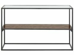 Werten Sie Ihr Zuhause mit diesem Konsolentisch auf, der sowohl in Ihr Wohnzimmer als auch in einen Flur passt. Das Möbelstück ist aus einer Kombination aus Metall und Glas gefertigt, so dass Sie ein Produkt für viele Jahre erhalten, vor allem, wenn Sie es richtig pflegen. Die Konsole verfügt außerdem über ein Regal unter der Tischplatte, auf dem Sie Ihre Lieblingsdekoration, Bücher oder Fotos ausstellen können.