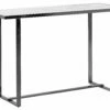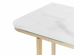 Bringen Sie mit diesem glamourösen Konsolentisch Eleganz und Funktionalität in Ihren Wohnraum. Die zwei Glasablagen in Marmor-Optik werden Ihr Wohnzimmer, Ihren Flur oder Ihr Schlafzimmer bereichern. Das Möbelstück bietet auch genügend Platz, um dekorative Vasen auszustellen oder die Dinge zu organisieren, die Sie griffbereit haben möchten. Die stabilen, goldenen Metallbeine mit glänzendem Finish ergänzen das elegante Gesamtbild des Möbelstücks.