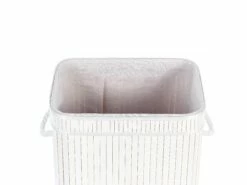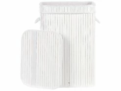 Erleichtern Sie sich den Waschalltag und setzen Sie auf einen handlichen Korb mit praktischen Tragegriffen. Das Modell ist vollständig aus Bambusholz handgefertigt und verfügt über einen herausnehmbaren Stoffeinsatz sowie einen passenden Deckel. Dabei kann der Korb dank dem Reißverschluss einfach verschlossen werden, so dass keine Gerüche aus seinem Inneren austreten können. Lassen Sie Ihre Wäsche oder das Spielzeug Ihrer Kinder im Nu verschwinden und sorgen Sie für Ordnung in Ihren Wohnräumen oder Ihrem Bad.