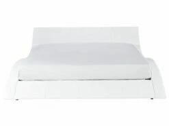 Extravagantes, weißes Lederbett mit geschwungenem Betthaupt
