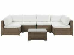 Modernes Gartenlounge Set mit passenden Auflagen in Weiß und Couchtisch