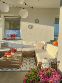 Mit dieser gemütlichen Sitzecke werden Ihre Gäste immer darauf bestehen den Wohnraum nach draußen zu verlegen. Die modularen Teile überlassen Ihnen jegliche Gestaltungsfreiheit und dank robustem, pulverbeschichtetem Aluminium-Untergestell sind sie formstabil, wetterfest, vor allem aber leicht. Der passende Couchtisch mit ansehnlicher Sicherheitsglasplatte bietet den richtigen Untergrund für Ihre Getränke, Kuchen, Eisbecher und vieles mehr. Die weichen Kissen mit abnehm- und waschbaren Bezügen erhöhen den Sitzkomfort der Sitzmöbel.