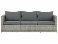 Diese luxuriöse Lounge ist die perfekte Wahl für jeden Außenbereich. Das 3-Sitzer Sofa kann mit Leichtigkeit in einen gemütlichen Liegeplatz verwandelt werden – dazu müssen Sie lediglich einen der Sitze anheben, je nach Wunsch regulieren und dann als Rückenlehne nutzen. Stellen Sie den Couchtisch auf den Mittelteil des Sofas und schieben Sie die Ottomanen an das Möbel, um 2 Sessel mit Fußhocker und einer hohen Ablagefläche für Ihre Getränke zu errichten. Das Set punktet mit witterungsbeständigen, gebürstetem Polyrattan, stabilen Aluminiumgestell und der robusten Tischplatte mit einer täuschend echten Holzoptik.