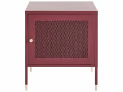 Dieser geräumige Schrank im trendigen, dunkelroten Farbton mit einem modernen Design ist die perfekte Ergänzung für jedes Schlaf-, Wohn- und Esszimmer sowie jeden Flur oder jede Diele. Der rechteckige Nachtschank ist aus pulverbeschichtetem, kaltgewalztem Stahl gefertigt, so ist er besonders langlebig und pflegeleicht. Seine Metallgittertür sorgt für einen raffinierten, industriellen Look und lässt das Sideboard leicht, offenherzig als auch persönlich wirken. Für einen edlen Touch sorgen die verzinkten Details an den Metallbeinen sowie an dem runden Metallgriff. Der Stahlschrank bietet sowohl Ablagefläche für Dekoartikel oder Lampen als auch zusätzlichen Stauraum für Dokumente oder Bücher. Da der Türschrank mit Untersetzern versehen ist, kann er in jedem Wohnraum platziert werden.