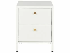 Ergänzen Sie Ihr Schlafzimmer mit diesem Nachttisch aus Metall. Seine schlichte, mit goldenen Griffen akzentuierte Form verleiht ihm einen industriellen Glam-Look, der in jeden modernen Raum passt. Die zwei tiefen Schubladen bieten viel Platz für all Ihre Kleinigkeiten, während die breite Platte einen perfekten Platz für eine Tischlampe bietet. Das Möbelstück hat alles, was man braucht: Es ist hübsch, funktional und leicht zu reinigen.