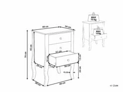 Der altbewährte und stets angesagte Landhausstil zeichnet sich durch seine gemütliche und einladende Art aus, die Ihnen ermöglicht in Ihren vier Wänden eine freundliche Wohlfühloase zu schaffen. Dieser Nachttisch mit den wundervoll geformten Beinen und der kompakten Ablagefläche ist ein ultimativer Blickfang in allen hell und traditionell eingerichteten Räumen. Die drei Schubladen mit den zarten Rundgriffen garantieren ausreichend Stauraum und sind ein praktisches i-Tüpfelchen dieses Möbelstücks.