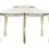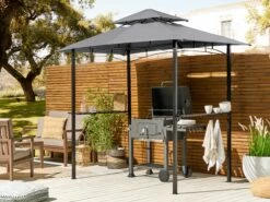 Richten Sie Ihren Garten mit diesem Gartenpavillon für die Grillsaison und warme Sommerabende mit Freunden und Familie ein. Er bietet ausreichend Platz für ein kleines Ess- oder Loungeset. Er ist aus langlebigem, pulverbeschichtetem Stahl gefertigt, der für eine stabile Struktur sorgt. Das Vordach ist aus einem Material gefertigt, das perfekt vor UV-Strahlen schützt, und verfügt über eine Öffnung im Dach, die eine durchgehende Belüftung gewährleistet. Darüber hinaus verfügt der Pavillon über Metallregale und Haken, die zur Aufbewahrung von Utensilien oder zur Aufstellung von Blumentöpfen verwendet werden können und ihn so noch stilvoller machen.