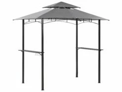 Richten Sie Ihren Garten mit diesem Gartenpavillon für die Grillsaison und warme Sommerabende mit Freunden und Familie ein. Er bietet ausreichend Platz für ein kleines Ess- oder Loungeset. Er ist aus langlebigem, pulverbeschichtetem Stahl gefertigt, der für eine stabile Struktur sorgt. Das Vordach ist aus einem Material gefertigt, das perfekt vor UV-Strahlen schützt, und verfügt über eine Öffnung im Dach, die eine durchgehende Belüftung gewährleistet. Darüber hinaus verfügt der Pavillon über Metallregale und Haken, die zur Aufbewahrung von Utensilien oder zur Aufstellung von Blumentöpfen verwendet werden können und ihn so noch stilvoller machen.