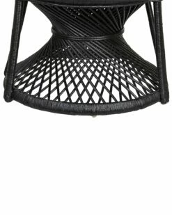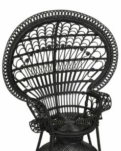 Voluminöser Pfauenstuhl aus schwarzem Rattan