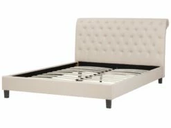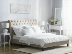 Elegantes Polsterbett in edlem Beige mit Kopfteil mit klassischer Knopfverzierung