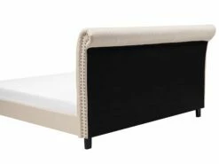 Ihr Polsterbett als wahre Wohlfühloase! Das elegante Bett REIMS bietet optimalen Liegekomfort, eine elegante und luxuriöse Ausstrahlung, ein stilvolles Design und einen hochwertigen und strapazierfähigen Stoffbezug aus Polyester in edlem Beige. Das hohe Kopfteil des Bettes ist bequem gepolstert, am oberen Rand wunderschön abgerundet und verfügt neben den klassischen Steppnähten mit Knopfverzierung auch über eine dekorative Verzierung mit Metallnieten am äusseren Rand.