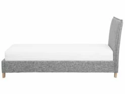 Modernes Einzelbett mit hohem Kopfteil und Polsterbezug in elegantem Grau in Leinenoptik