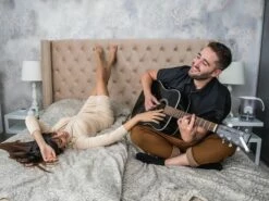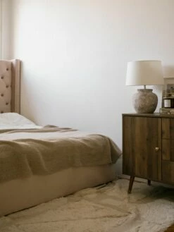Trendy Doppelbett aus Samtstoff in elegantem Beige