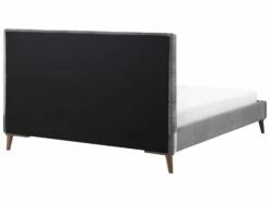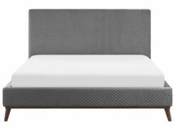 Dieses moderne Bett aus Samtstoff ist ideal für jedes Schlafzimmer – es schafft eine perfekte Balance zwischen Eleganz und Schlichtheit. Das gesteppte Kopfteil in rechteckiger Form sowie die Seiten des Betts sind mit einem weichen, pflegeleichten Stoff in Grau versehen. Die Holzkonstruktion sorgt für Stabilität, während die stilvollen Beine aus dunklem Holz das Gesamtkonzept wunderbar ausgleichen.