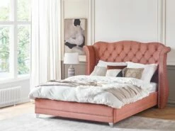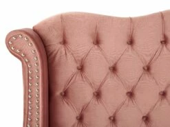 Elegantes, rosafarbenes Doppelbett aus Samtstoff im Chesterfield Style