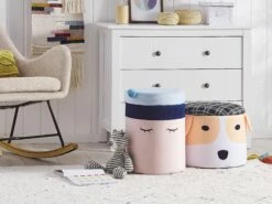Runder Hocker für Kinder im Hunde-Design mit praktischem Stauraum