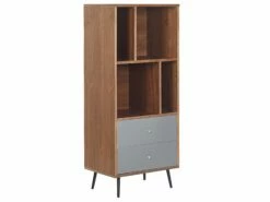 Ob als zusätzlicher Stauraum im Schlaf- und Ankleidezimmer oder als Abstellplatz im Ess- und Wohnzimmer, dieses Möbelstück kann überall universell eingesetzt werden. Sein Finish aus wunderschönem Eichenholzfurnier komponiert sich gut mit den grauen Schubladen, was dem Gesamtbild eine moderne und ansprechende Note verleiht. Die schmalen, schrägen Metallbeine in Schwarz geben dem Bücherregal eine hübsche Leichtigkeit.