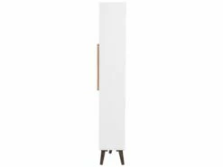 Dieses universelle Highboard ist der ideale Stauraum für Bücher, DVDs, Zeitschriften oder Dekoelemente. Dank der interessanten Farb- und Materialkombination von hellem Holz und edlem Weiß wird das Regal zum modernen Hingucker in Ihrer Wohnung. Die dunkelbraunen Füße verleihen dem grossen Möbelstück eine angenehme Leichtigkeit.