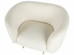 Dieser schöne Sessel strahlt Luxus aus, von den goldenen Beinen bis zu den sanften Schwüngen des gepolsterten Designs. Mit einem strukturierten Bouclé-Stoff-Bezug ist er angenehm weich und bequem und verleiht dem Raum eine gemütliche Atmosphäre. Die Polsterung des Sitzes bietet bequemen Sitzkomfort und ist der perfekte Platz, um bis spät in die Nacht zu lesen oder fernzusehen. Das elegante Design des Sessels ist die perfekte Ergänzung für eklektische, traditionelle oder glamouröse Einrichtungen.