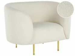 Dieser schöne Sessel strahlt Luxus aus, von den goldenen Beinen bis zu den sanften Schwüngen des gepolsterten Designs. Mit einem strukturierten Bouclé-Stoff-Bezug ist er angenehm weich und bequem und verleiht dem Raum eine gemütliche Atmosphäre. Die Polsterung des Sitzes bietet bequemen Sitzkomfort und ist der perfekte Platz, um bis spät in die Nacht zu lesen oder fernzusehen. Das elegante Design des Sessels ist die perfekte Ergänzung für eklektische, traditionelle oder glamouröse Einrichtungen.