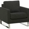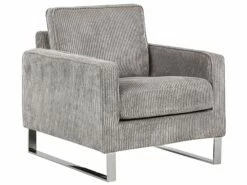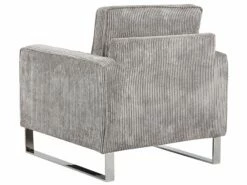 Dank der hochwertigen Verarbeitung bekommt der Sessel eine edle Ausstrahlung, die ins Auge fällt. Das angenehme Material aus Cord in Grau sorgt für eine schöne Polsterung und komfortable Armlehnen. Die gewagten Metallkufen sichern einen festen Stand.