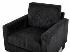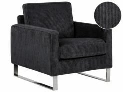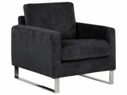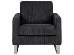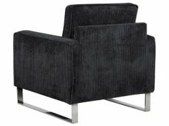 Dank der hochwertigen Verarbeitung bekommt der Sessel eine edle Ausstrahlung, die ins Auge fällt. Das angenehme Material aus Cord in Schwarz sorgt für eine schöne Polsterung und komfortable Armlehnen. Die gewagten Metallkufen sichern einen festen Stand.