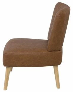 Der gemütliche Polstersessel verfügt über einen fast altmodischen Charme, welcher hier ganz gekonnt mit hochwertiger, robuster Qualität und optimalem Sitzkomfort kombiniert wird. Die geräumige Sitzfläche ist angenehm gepolstert und die nach oben breiter werdende, komfortabel geformte Rückenlehne ist mit dekorativen, vertikalen Ziernähten versehen. Der pflegeleichte Rundumbezug aus strapazierfähigem, braunem Kunstleder und die schlanken, leicht schräg stehenden Beine aus Gummibaumholz runden das liebenswerte Design ab.