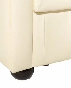 Wenn Sie den traditionellen, englischen Stil lieben, wird der zeitlose Klassiker unter den Ledermöbeln Sie mit stilvoller Eleganz, einer gemütlichen Ausstrahlung und erstklassigen Sitzkomfort begeistern. Der Bezug aus Kunstleder im Farbton Creme verfügt über die charakteristische Knopfverzierung auf den wunderschön abgerundeten hohen Rücken- und Armlehnen. Dank der breiten und tiefen Form ist dieser klassische Sessel besonders einladend und strahlt komfortable Gemütlichkeit aus.