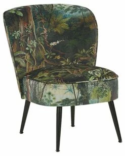 Formschöner Cocktailsessel mit buntem Dschungel-Motiv