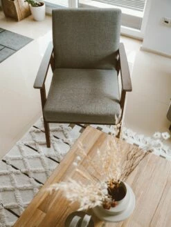 Postmodern, nostalgisch, traditionell – dies charakterisiert am besten diesen charmanten Stoffsessel. Der Rundumbezug aus hochwertigem Textil korrespondiert ausgezeichnet mit den dazugehörigen geraden Armlehnen und schmalen Beinen aus Gummibaumholz. Dank der schlichten Formgebung dieses Polstersessels passt das Möbelstück zu allen traditionell eingerichteten Wohnräumen und verleiht ihnen einen unvergessenen Retro-Flair.