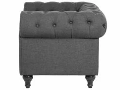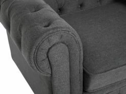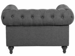 Sie lieben den traditionellen, englischen Stil und wünschen sich erstklassigen Sitzkomfort, stilvolle Eleganz und eine gemütliche Ausstrahlung? Dann nehmen Sie Platz auf Ihrem neuen Polstersessel! Klassische Formgebung trifft bei diesem zeitlosen Klassiker auf komfortable Gemütlichkeit. Der Rundumbezug ist aus hochwertigem Polyester in edlem Grau gefertigt und verfügt über die charakteristische Knopfverzierung auf den wunderschön abgerundeten Rücken- und Armlehnen. Die breite und tiefe Form des bequemen Sessels lädt zum Relaxen ein.