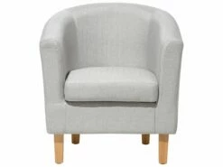 Der bequeme Cocktailsessel mit praktischem Fußhocker lädt zum Relaxen ein und bringt noch mehr gemütliche Atmosphäre in Ihr Zuhause. Das zeitlose Sitzmöbel ist sowohl als Einzelstück wie auch als Ergänzung zu anderen Wohnzimmer ganz in seinem Element und wird schnell zum gemütlichen Lieblingsplatz. Dank seiner geschwungenen, kompakten Form und dem behaglichen Bezug aus grauem Flachsgewebe fügt er sich problemlos in jeden Wohnstil ein. Robuste Holzfüße unterstreichen das klassische Design.
