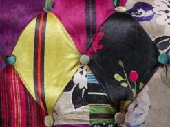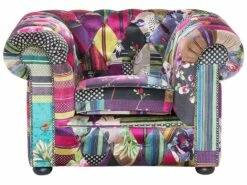 Sie suchen einen klassischen Sessel und Sie mögen es auch gerne ausgefallen? Sie lieben den traditionellen, englischen Stil und zugleich möchten Sie ein modernes Möbelstück mit einer fröhlichen Ausstrahlung? Dann ist der Sessel mit seinem trendy Patchwork-Muster mit violetten Akzenten genau das Richtige für Sie! Der zeitlose Klassiker unter den Polstermöbeln bekommt durch das bunte Muster eine besonders fröhliche Ausstrahlung. Der Rundumbezug ist aus hochwertigem Polyester gefertigt und verfügt über die charakteristische Knopfverzierung auf den wunderschön abgerundeten Rücken- und Armlehnen. Dank seiner breiten und tiefen Form ist dieser super-bequeme Sessel besonders einladend. Klassische Formgebung mit pfiffigem Charme – dieser gemütliche Sessel bietet Ihnen Entspannung pur!