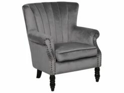 Lehnen Sie sich zurück und genießen einen Wohlfühl-Moment in diesem bequemen Sessel. Das Möbelstück ist ein eleganter Hingucker für jedes Wohnzimmer. Seine zwei äußerst dekorativen, vorderen Füße aus Gummibaumholz harmonieren mit der samtig weichen Polsterung in Grau und der strukturierten Rückenlehne. Das Highlight – die dezente Knopfverzierung an den formschönen Armlehnen.